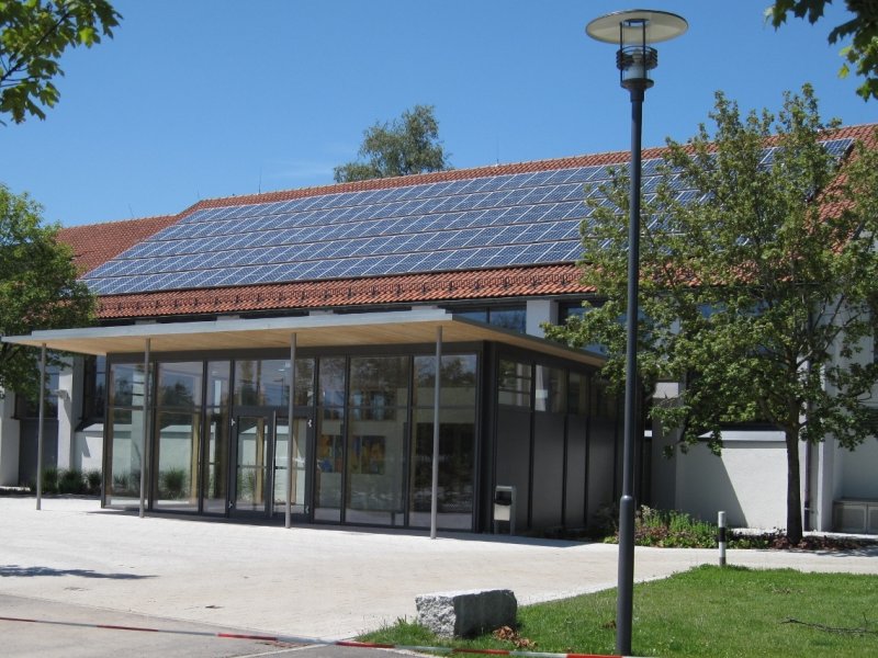 Die Gemeinde hat auf zwei Dächern Photovoltaikanlagen installiert: auf der Grundschule und der Gemeindehalle. Diese Dachflächen eignen sich am besten für die solare Energienutzung. Die erbrachte Leistung vom Schuldach kann auf einer Anzeigetafel abgelesen und für den Unterricht verwendet werden.