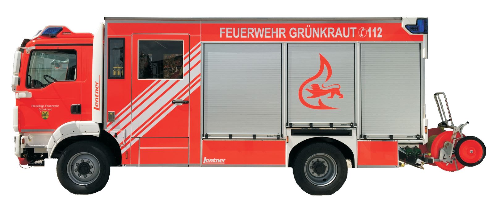 Ausstattung: 1.600 L Wassertank, 6 Atemschutzgeräte, Rettungssatz, 3-teilige Schiebleiter, Seilwinde, Hebekissen, Rettungssäge, Drucklüfter